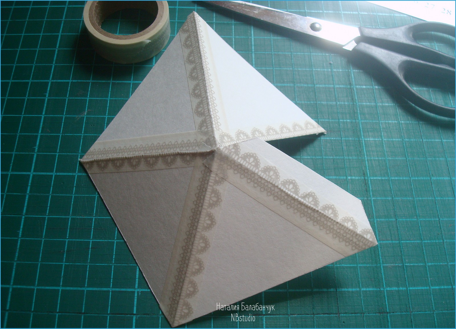 Так же я чуть-чуть срезаю внешний контур створок, чтобы между соседними образовался зазор (и был виден наш красивый скотч))). Так после склеивания фонарика бумага не будет торчать на сгибах.