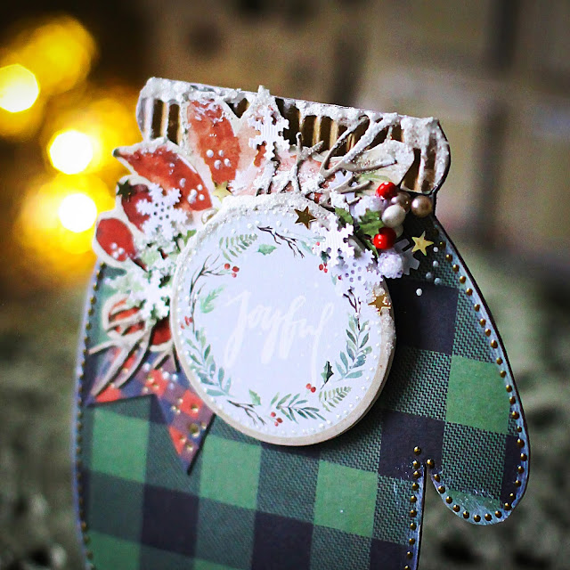 Открытка №6 в форме зимней варежки. На ней также красуется надпись и атмосфернейший зимний декор! :-)