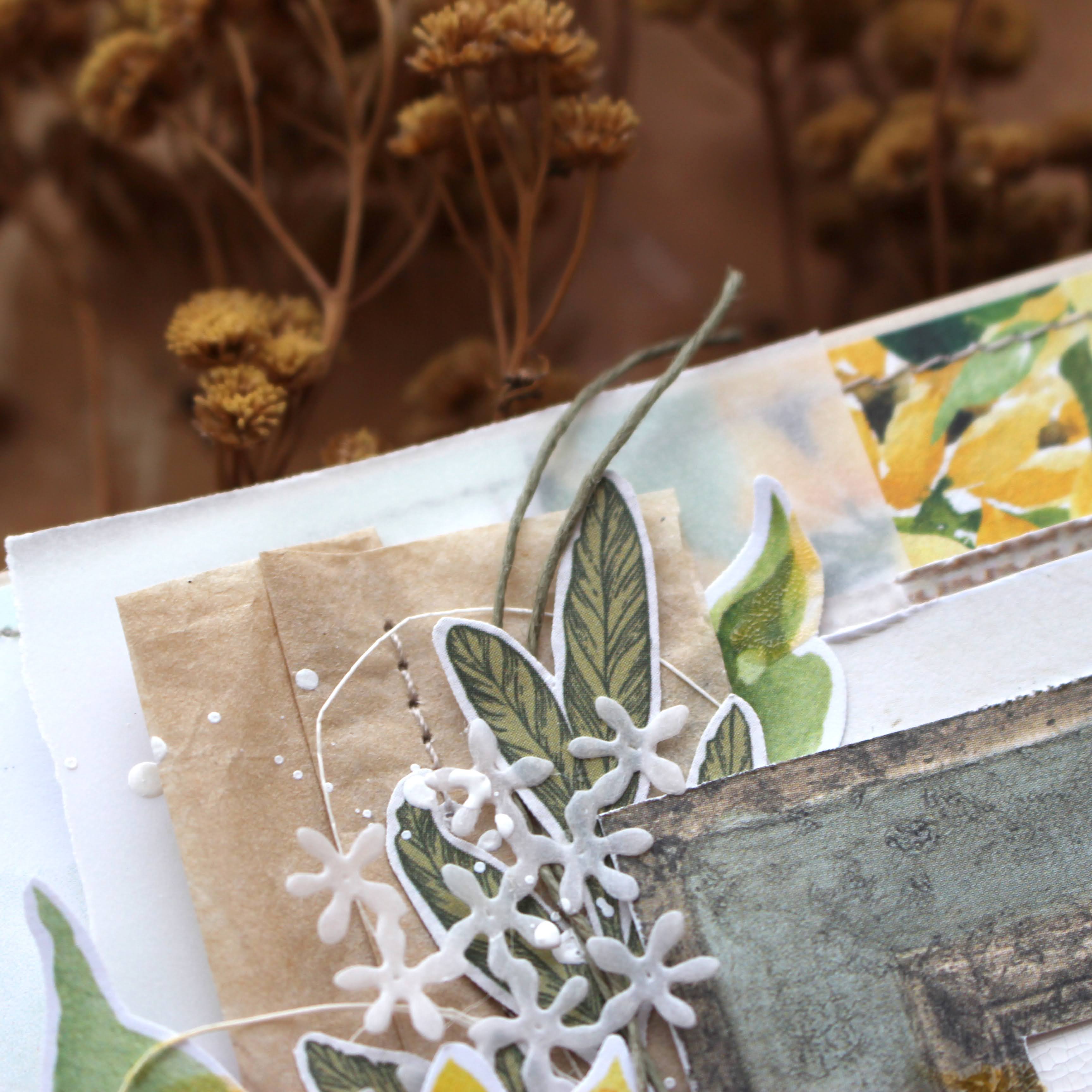 Меня удивило и порадовало сочетание детализированных высечек из коллекции "Cozy Forest" и акварельных подсолнухов из коллекции "Mice's Stories"! Смотрятся вместе ооочень здорово!